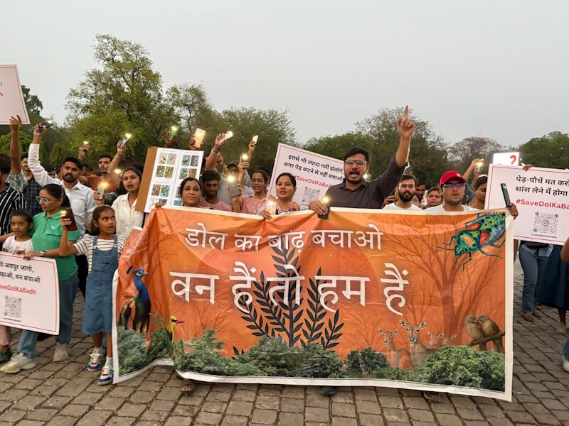 Cities across India have seen resistance on environmental issues – the midnight demonstrations at Mumbai’s Aarey[15] in 2019 against the hacking of 2,200 trees; hundreds of students and environmentalists against the felling of 400 trees as part of clearing the 400-acre forest land in Kancha Gachibowli[16] in Hyderabad; students and children protecting the Dol ka Badh forest in Jaipur;[17] residents of Pune[18] and Dehradun[19] rallying and demonstrating over the years against the proposed development projects at the cost of the hills that sustain the cities; the struggles against riverfront development projects or to protect wetlands.
