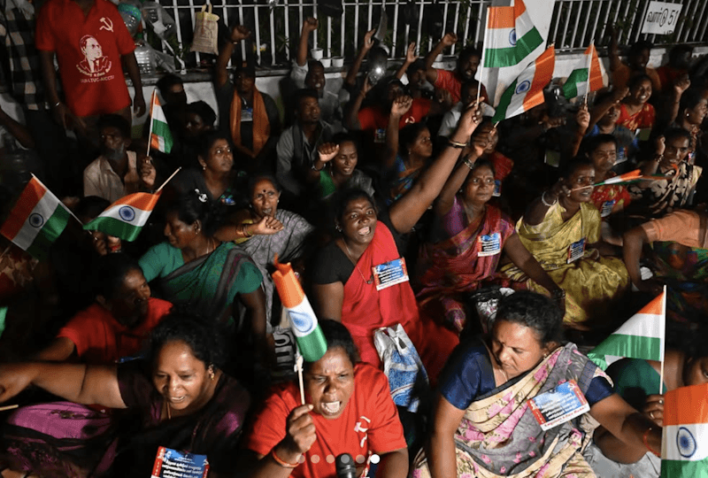 Take the case of Marina Beach in Chennai. For decades, it was one of the city’s most visible protest sites, drawing large gatherings in the 1970s.[7] The seven-day Jallikattu protest in 2017 was impactful because it happened in Marina, says photojournalist from Chennai, Akhila Easwaran. In 2018, after the Madras High Court barred protests.[8] Two other major spots in Chennai were the Chepauk Stadium and Valluvar Kottam. “For the past five years, protests in Chepauk haven’t happened as they used to,” says Easwaran, who has covered more than fifty protests in the city. Few protests now take place in Valluvar Kottam too. “It is the heart of the city and gets attention but now most protests are shifted[9] to Swami Sivananda Salai as the designated spot,” she says.
