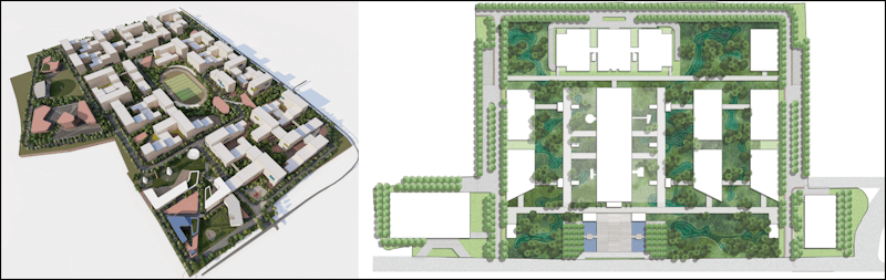 In my practice, we in PKDA architects have attempted this. In Konsari township and the Bombay High Court plans (a competition submission), the idea pursued was of multiple buildings or building blocks intertwined with ecological landscapes but not merely decorative, ornamental, and manicured landscapes that’s the celebrated trend. Buildings that intertwine with natural ecology would factor in a response to the climate crisis[9]—rising temperatures, heat island effect, flash floods, rainwater dispersal, low carbon absorption, and loss of biodiversity.