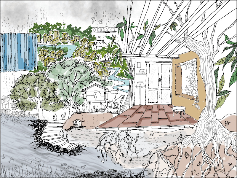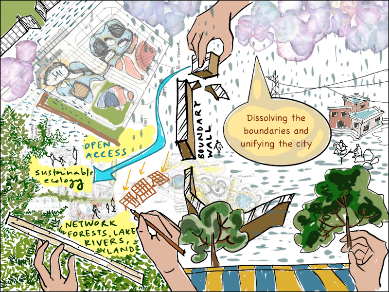 There is an inter-relationship between people, between places and environment, that the structured order of mainstream planning and design are antithetical to. We see the prevailing order and intensifying climate change sever these interdependent relationships. Adding to the complexity of race, caste, religion, class, culture, and gender which play out in physical boundaries and divide city landscapes, the climate crisis is critically affecting lives, relationships and the planet.