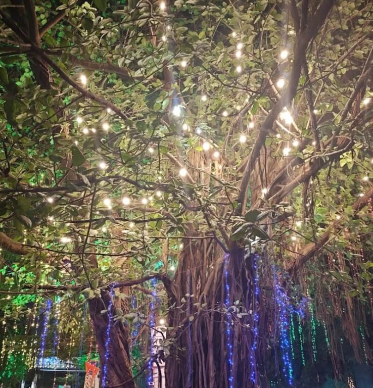 Importantly, the BMC went where few fear to tread in 2023, the same year that the Kolkata Illumination Project took shape. It called for tenders and issued work orders to illuminate 15,000 trees across the city, especially on five arterial roads that were to transport delegates for the G20 Disaster Risk Reduction Working Group hosted in Mumbai as part of the G20 Summit in Delhi. This turned into the civic body’s ‘beautification project’ costing Rs 1,500 crore,[4] expanding the footprint of psychedelic-coloured lights on trees across the city, some in butterfly shape.