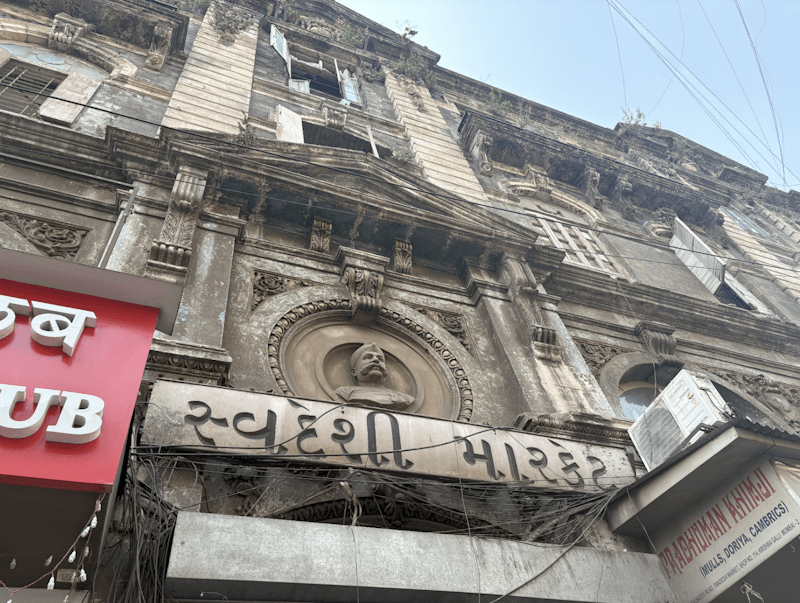 Once the headquarters of the East India Cotton Association, which was formed in 1922 to fix standards of cotton classification, regulate its import and export, and adjudicate in conflicts between traders, the building was constructed in 1938 in Art Deco style – the then modern expression in contrast to the Victorian and Gothic colonial buildings. It features motifs representing various steps of the cotton trade from sowing and reaping to spinning and packing; some of these are sadly hidden behind large LED screens now. The stately steel frame, story-telling in bas relief, the chhatri at the top are reminders of that.