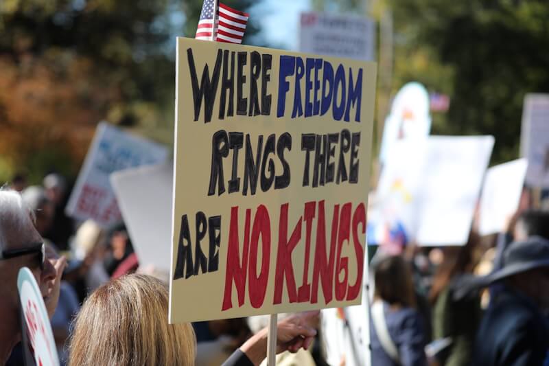 “No Kings” protests in US cities in 2025 opposed Trump’s second term as President.