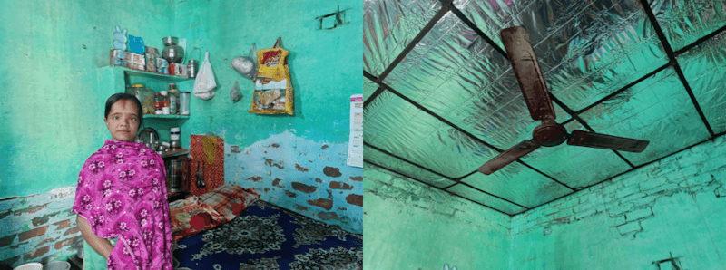 “That is why our intervention area is the roof,” says Kirti Makhija, Project Associate with cBalance. “If we could slow down the heat transfer there, residents would feel a real difference.” Low-cost prototypes that transferred heat and could be adapted to different types of roofs were preferred. The team offered five solutions to 13 homes, each through discussions with the residents. Three houses received biomass panels, made from agricultural waste foam-based material lined with a layer of multi-layer plastic made out of plastic wrappers. Geeta Devi’s house has this. She says it has provided some respite: “Kuch rahat mila hain”.