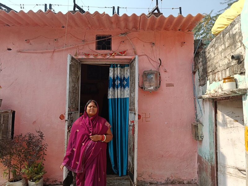 Walls here are mostly of unplastered brick and roofs are typically made of asbestos cement sheets, stone slabs, or tin. Ventilation is limited as narrow lanes restrict airflow and most houses share walls. This creates a heat trap[11] where the roof becomes the primary entry point for heat. During summers, these heat through the roofs make it difficult for residents to stay indoors. “We try to seek shade under trees as much as possible during summers,” shares Sahnaaj, a resident.