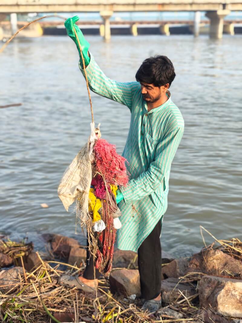 “I am from Bihar. I used to sell vegetables on footpaths in Noida. In 2015, I joined a multinational company and worked till 2022. When I went to the Yamuna for the first time around 2018, I felt bad because I had never seen such a dirty foamy river. I felt I should work for the Yamuna.[2]